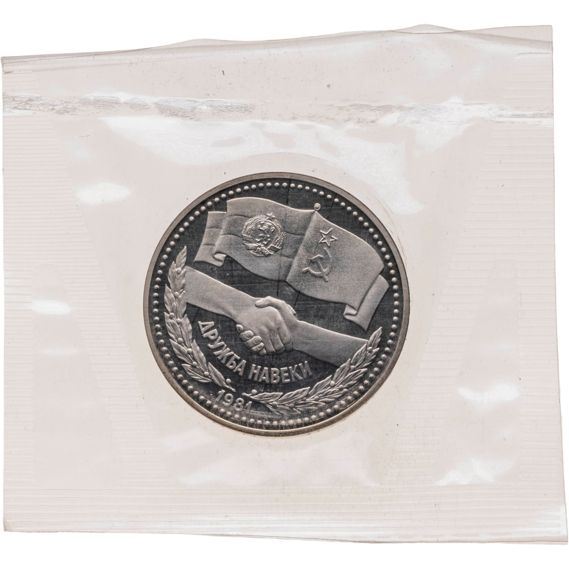 1 рубль 1981 Proof "Советско-болгарская дружба, "Дружба навеки" (Новодел) в банковской упаковке