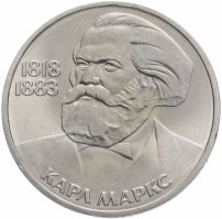 Карл Маркс – личность в СССР крайне значимая. Больше чем его, в стране уважали только великих вождей коммунизма. Разумеется, серия юбилейных монет о великих людях не могла обойтись без идеолога коммунизма. В 1983 году был выпущен посвящённый ему юбилейный рубль «165-летие со дня рождения Карла Маркса».
