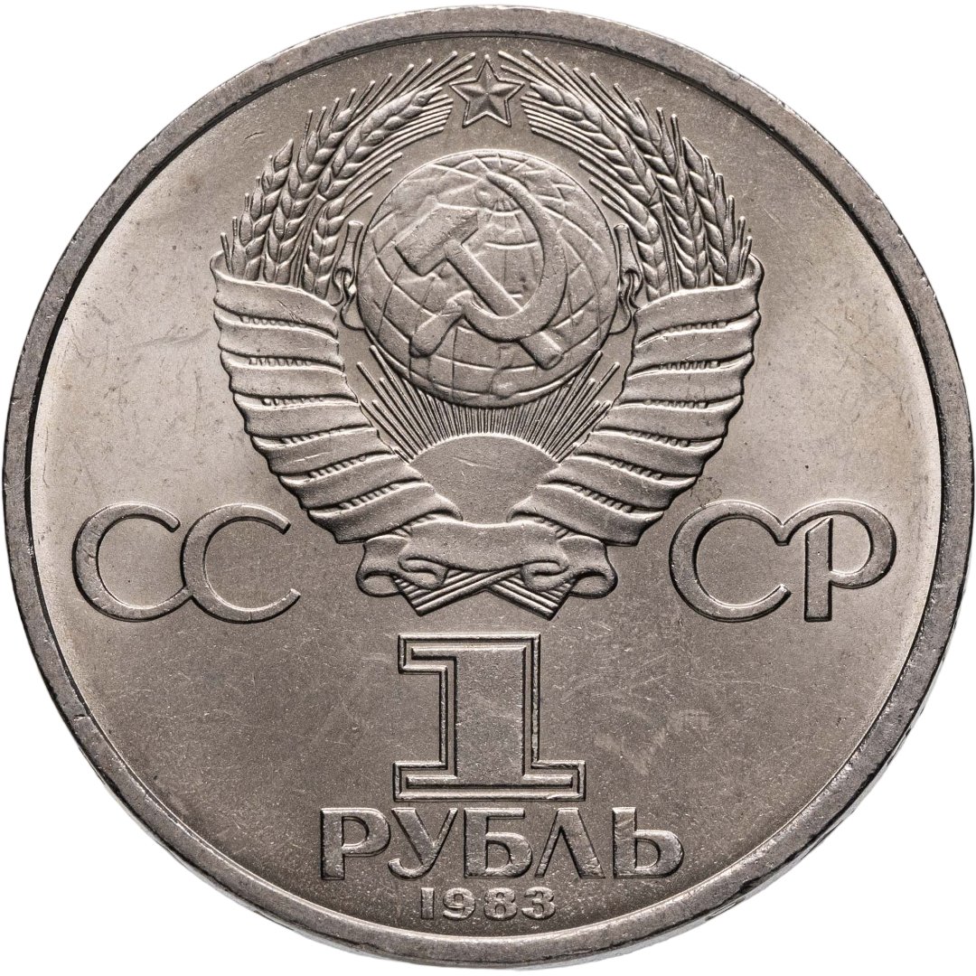 На аверсе: в верхней части располагается Государственный герб Советского Союза. Его классическое изображение — серп и молот, за ними земной шар с восходящим солнцем, наверху пятиконечная звезда, по бокам снопы пшеницы, перевязанные пятнадцатью лентами по количеству республик, входящих в состав Советского Союза. Аббревиатура "СССР" разделённая гербом. Ниже указан номинал — цифра один и слово "рубль", еще ниже год выпуска - 1983.