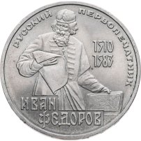 Серия юбилейных монет, посвящённая великим людям, разумеется не могла обойтись без первопечатников. В СССР печатное слово вообще было крайне уважаемым. К книгам и периодике предъявлялись особые требования, цензура была жёсткой. Слово изданное должно было нести исключительно полезную и идеологически верную информацию, и было одним из инструментов власти.