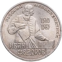 Серия юбилейных монет, посвящённая великим людям, разумеется не могла обойтись без первопечатников. В СССР печатное слово вообще было крайне уважаемым. К книгам и периодике предъявлялись особые требования, цензура была жёсткой. Слово изданное должно было нести исключительно полезную и идеологически верную информацию, и было одним из инструментов власти.