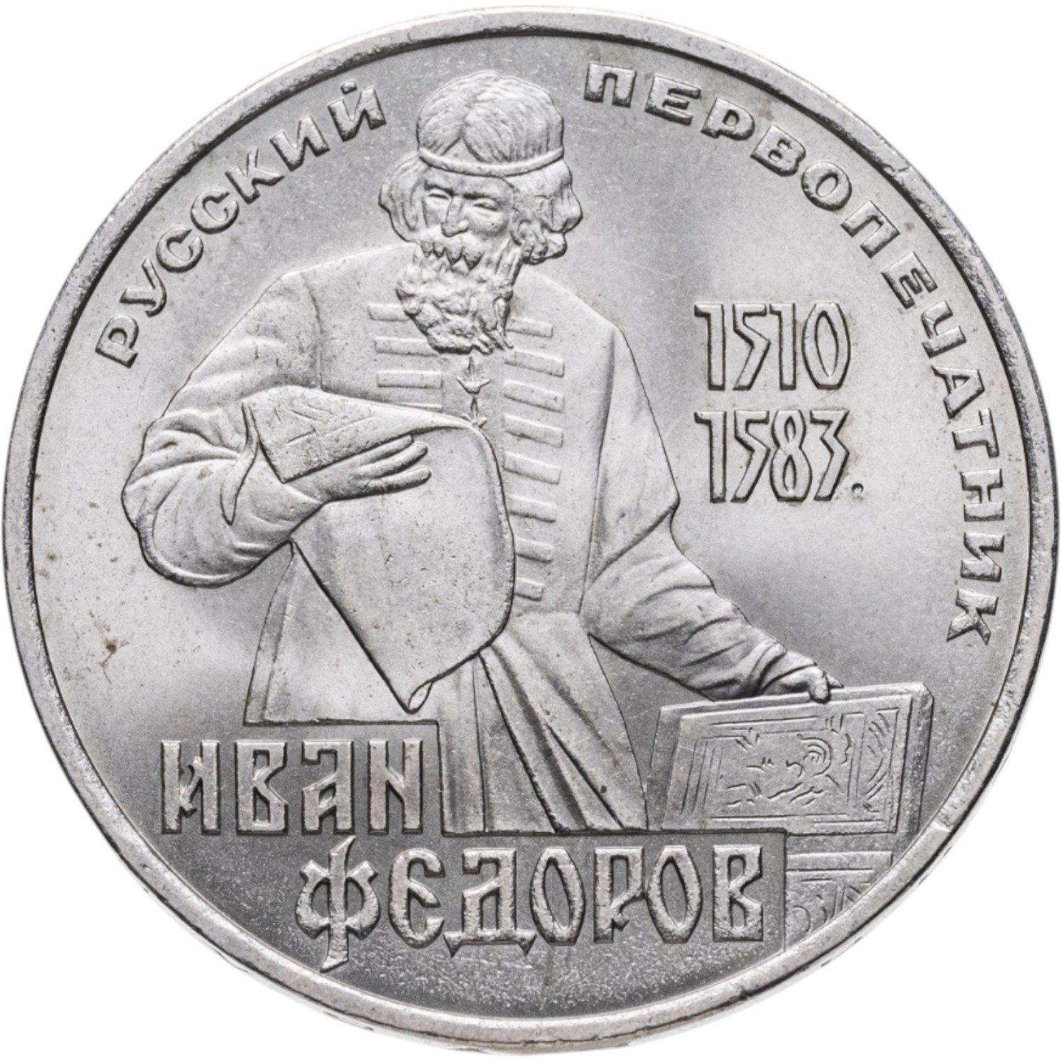 Серия юбилейных монет, посвящённая великим людям, разумеется не могла обойтись без первопечатников. В СССР печатное слово вообще было крайне уважаемым. К книгам и периодике предъявлялись особые требования, цензура была жёсткой. Слово изданное должно было нести исключительно полезную и идеологически верную информацию, и было одним из инструментов власти.