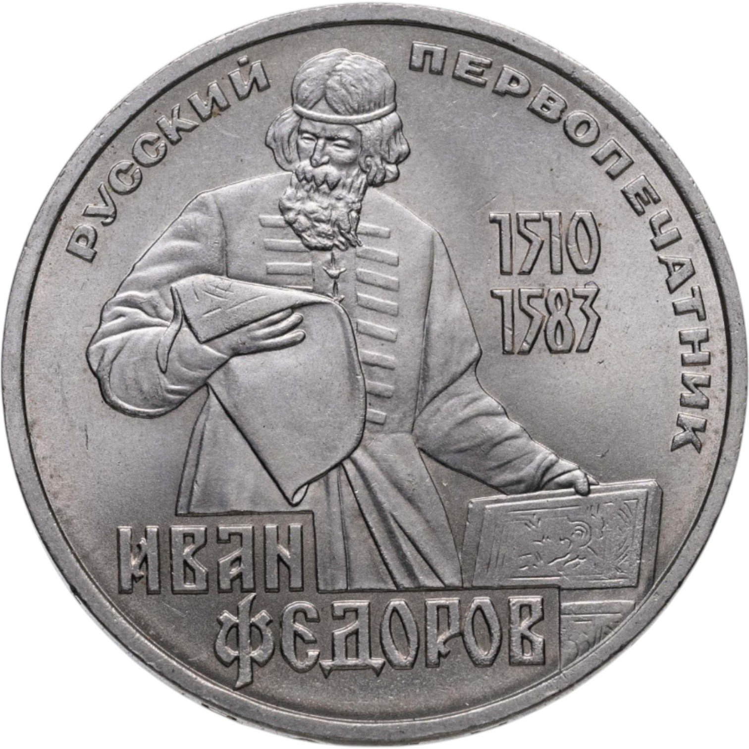 Серия юбилейных монет, посвящённая великим людям, разумеется не могла обойтись без первопечатников. В СССР печатное слово вообще было крайне уважаемым. К книгам и периодике предъявлялись особые требования, цензура была жёсткой. Слово изданное должно было нести исключительно полезную и идеологически верную информацию, и было одним из инструментов власти.