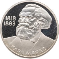 Карл Маркс – личность в СССР крайне значимая. Больше чем его, в стране уважали только великих вождей коммунизма. Разумеется, серия юбилейных монет о великих людях не могла обойтись без идеолога коммунизма. В 1983 году был выпущен посвящённый ему юбилейный рубль «165-летие со дня рождения Карла Маркса».