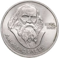 150 лет со дня рождения исполнилось Дмитрию Менделееву, когда в его честь оказалась выпущена предлагаемая здесь монета - 1 рубль 1984 года. Она входит в коллекцию советских юбилейных монет, и в нашем магазине можно купить как полный набор, так и альбом под советскую юбилейку 1961-1991 годов.