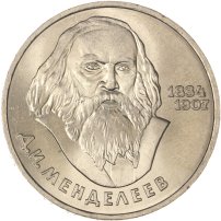 150 лет со дня рождения исполнилось Дмитрию Менделееву, когда в его честь оказалась выпущена предлагаемая здесь монета - 1 рубль 1984 года. Она входит в коллекцию советских юбилейных монет, и в нашем магазине можно купить как полный набор, так и альбом под советскую юбилейку 1961-1991 годов.