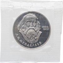 1 рубль 1984 Proof 150-летие со дня рождения русского химика Д. И. Менделеева ( Новодел ) в запайке