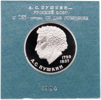 Купить 1 рубль 1984 Proof "185-летие со дня рождения русского поэта А. С. Пушкина" СТАРОДЕЛ в футляре Госбанка СССР