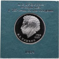 1 рубль 1984 "185-летие со дня рождения русского поэта А. С. Пушкина" Стародел в футляре Госбанка СССР