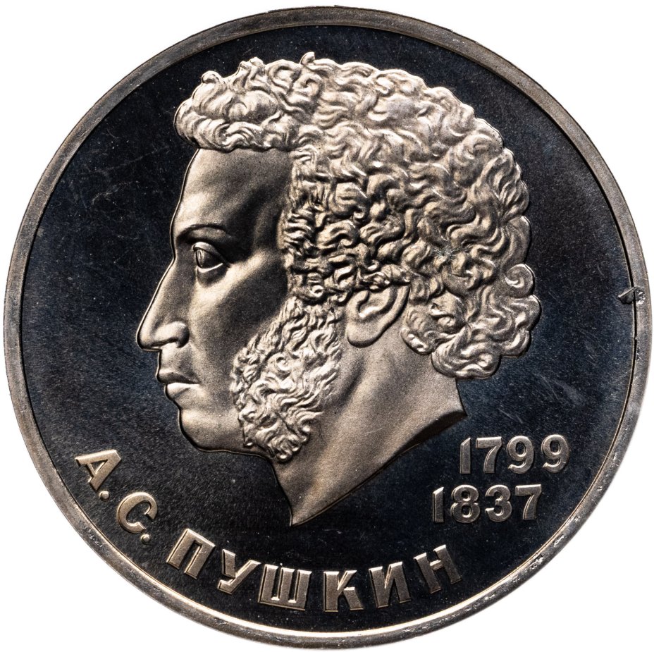 Купить 1 рубль 1984 Proof 185-летие со дня рождения русского поэта А. С. Пушкина, стародельный выпуск