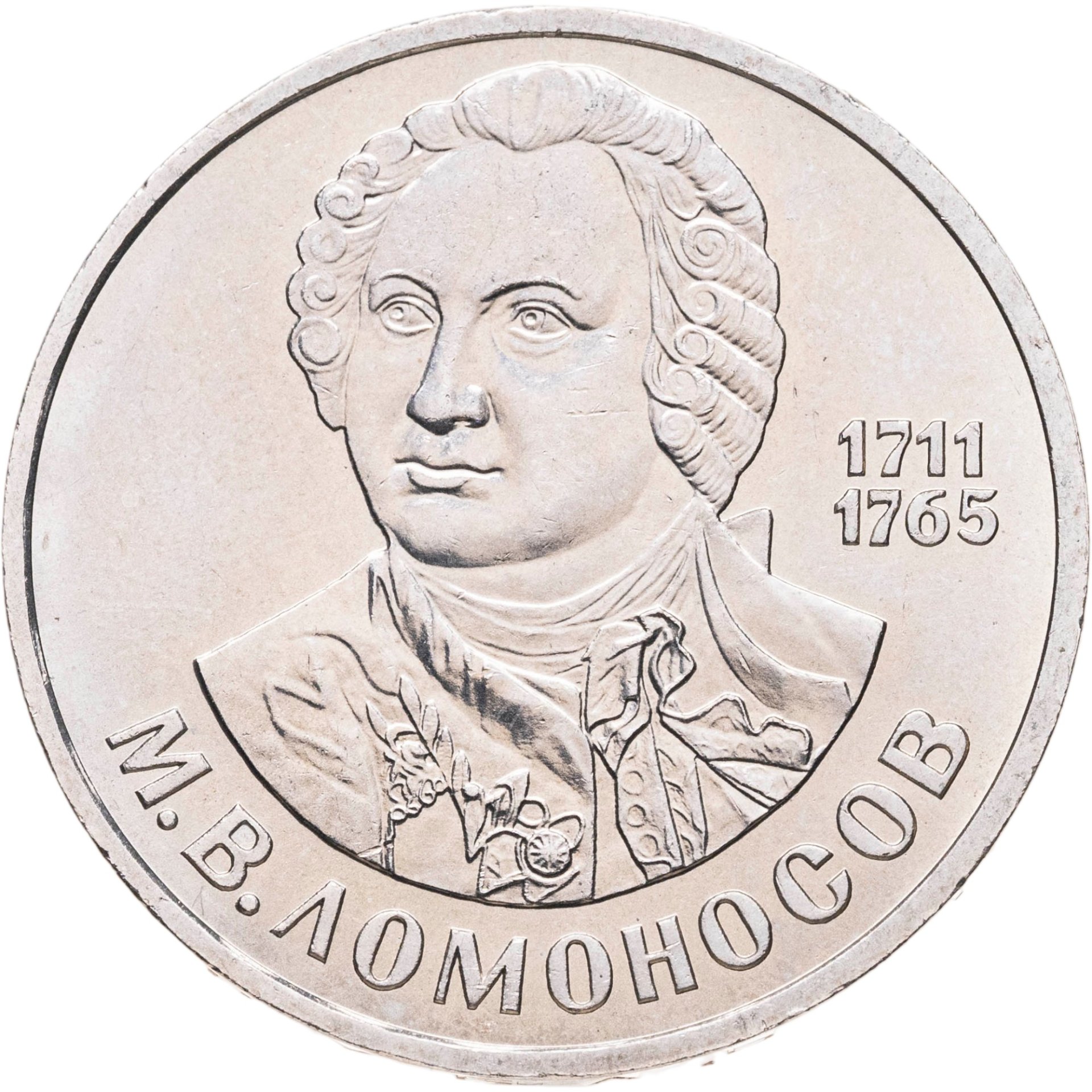 В 1986 году страна отмечала 275 лет со дня рождения выдающейся личности в истории — Михаила Васильевича Ломоносова. Великий русский учёный родился 19 ноября 1711 года в Архангельской губернии. В 1731 году поступает учиться в Москву — согласно легенде, до Москвы он добрался пешком. Будучи весьма одаренной и целеустремленной личностью, он добился значительных успехов в различных направлениях науки — являлся ученым — естествоиспытателем, физиком, химиком, астрономом. Является создателем многих химических производств на территории России. Занимался подготовкой учебников по металлургии и химии. Однако талантливый человек талантлив во всём. Михаил Васильевич увлекался литературой (публиковал оды и трагедии), рисованием, филологией, генеалогией, историографией. К несомненным его заслугам также относят создание Московского университета, позже названного в его честь. Скончался Ломоносов в 1765 году, оставив заметный след в истории Российского государства.