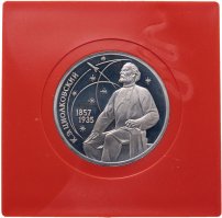 • Название монеты: 130 лет со дня рождения основоположника отечественной космонавтики К. Э. Циолковского