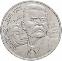 В 1988 году, второй в серии, посвящённой великим поэтам и писателям, вышла монета памяти Максима Горького. В этом году исполнялось 120 лет со дня его рождения.