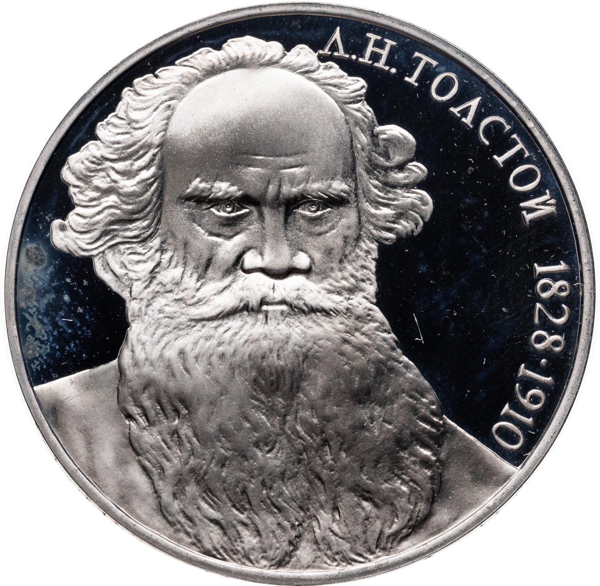 Ко дню рождения (или годовщине смерти) великих людей в СССР с 1970 по 1991 было принято чеканить памятные обиходные рублёвые монеты. В 1988 исполнялось 160 лет со дня рождения Льва Толстого, в честь чего и была выпущена памятная мельхиоровая монета тиражом 4 млн экземпляров. 225 тысяч из них – в качестве «пруф» (специально для коллекционеров), а остальные «анциркулейтед» (обычное). Всего есть 3 разновидности этих монет: обычная, с ошибкой даты чеканки (год 1987), и «Злой Толстой» – отчеканенные штемпелем «А» и «Д» монеты с большей рельефностью. Редкими считаются штемпель «Д» и монеты с неправильной датой.