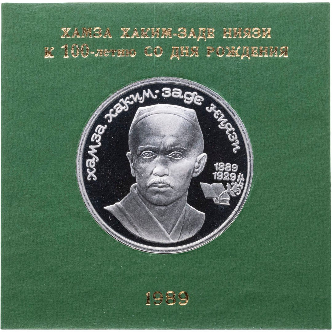 1 рубль 1989 100 лет со дня рождения узбекского поэта Хамзы Хаким-заде Ниязи, в футляре Госбанка СССР