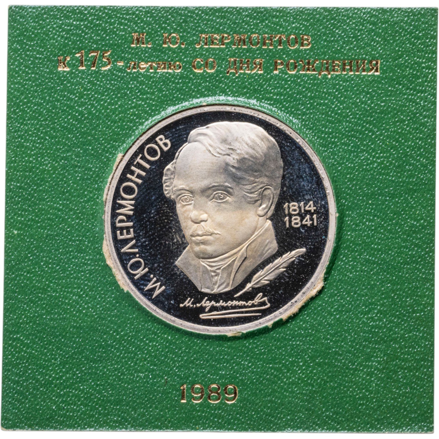1 рубль 1989 Proof 175 лет со дня рождения русского поэта М. Ю. Лермонтова в футляре Госбанка СССР