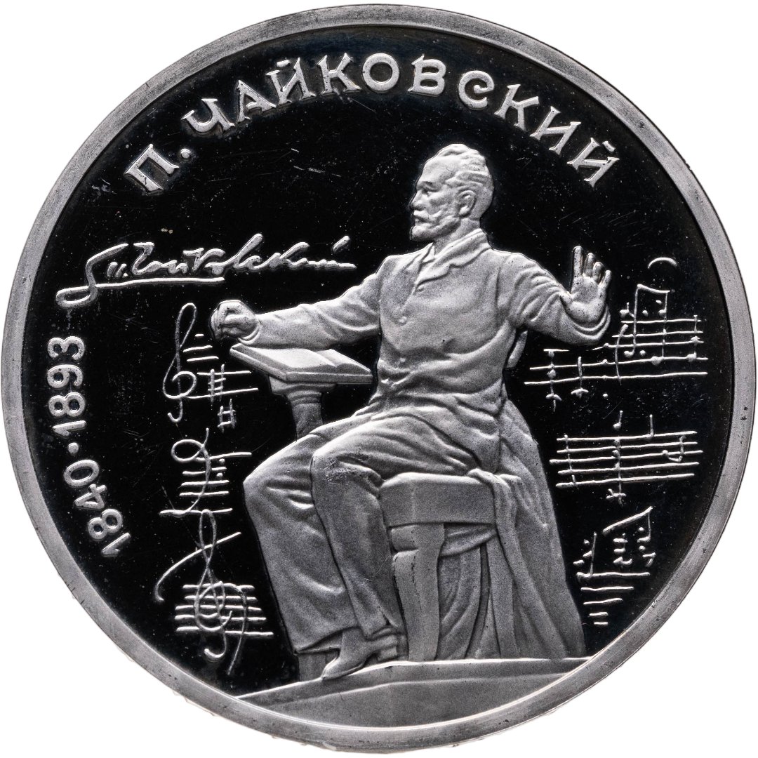 Купить 1 рубль 1990 Proof "150 лет со дня рождения русского композитора П. И. Чайковского"
