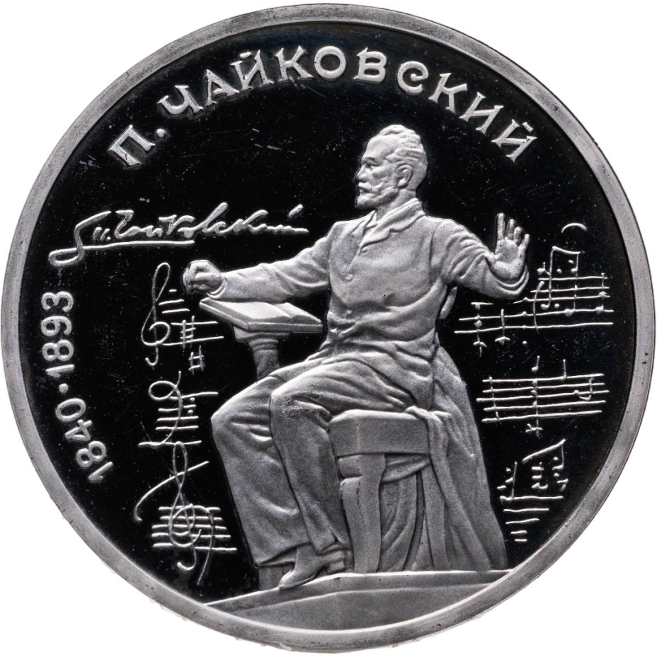 купить 1 рубль 1990 Proof "150 лет со дня рождения русского композитора П. И. Чайковского"