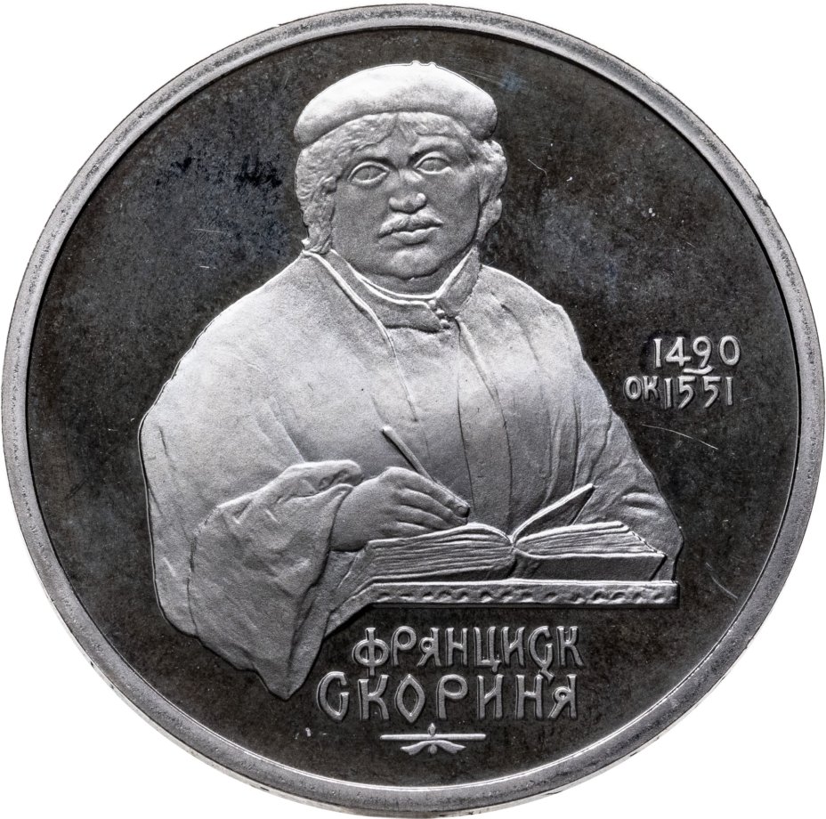 Купить 1 рубль 1990 Proof "500 лет со дня рождения выдающегося деятеля славянской культуры Ф. Скорины"
