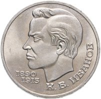 В центре реверса находится портрет К.В. Иванова. Писатель изображен в профиль, прямой четкий нос, сдвинутые брови, плотно сжатые губы, с одной стороны, свидетельствуют о твердом характере Иванова, который помогал ему бороться за идентификацию чувашского народа. С другой – придают писателю возраст – он умер совсем молодым, в двадцать пять лет, а на изображении выглядит чуть старше. Вдоль нижнего правого края реверса тянется надпись – «К.В. Иванов», а нижней левой части под подбородком писателя указаны годы его жизни – «1890 – 1915».