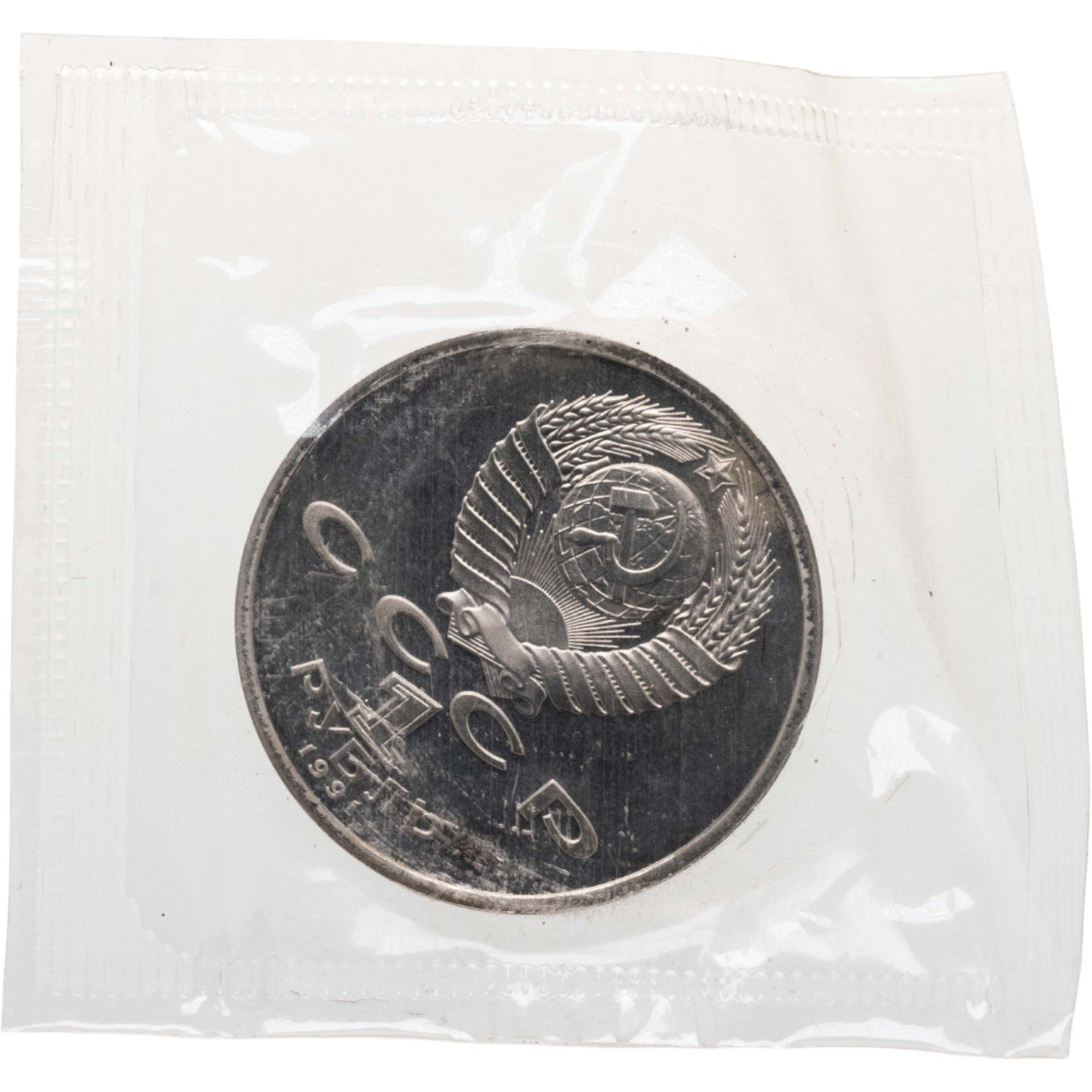 Сверху герб СССР с 15 витками ленты, под ним буквы «СССР», ниже обозначение достоинства монеты цифра «1» и ниже слово «РУБЛЬ», внизу у канта год выпуска монеты «1991».