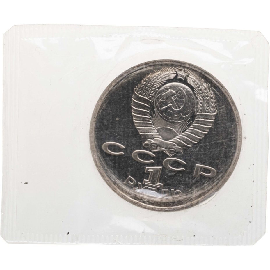 Сверху герб СССР с 15 витками ленты, под ним буквы «СССР», ниже обозначение достоинства монеты цифра «1» и ниже слово «РУБЛЬ», внизу у канта год выпуска монеты «1991».