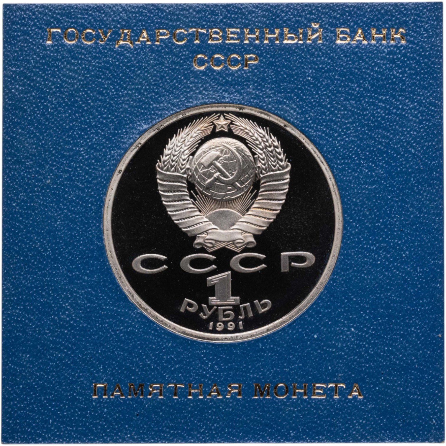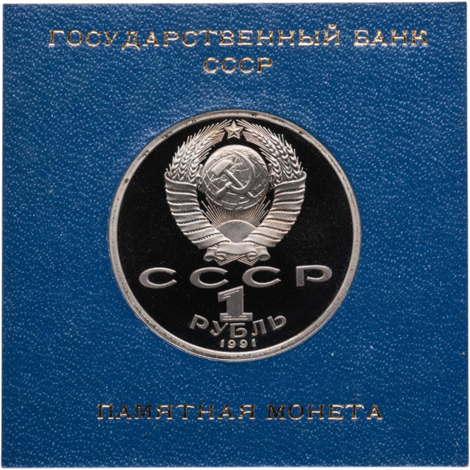 Сверху герб СССР с 15 витками ленты, под ним буквы «СССР», ниже обозначение достоинства монеты цифра «1» и ниже слово «РУБЛЬ», внизу у канта год выпуска монеты «1991».