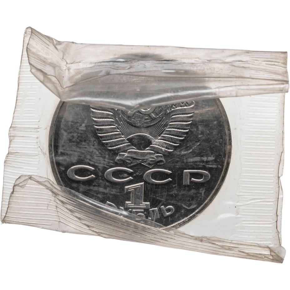 Сверху герб СССР с 15 витками ленты, под ним буквы «СССР», ниже обозначение достоинства монеты цифра «1» и ниже слово «РУБЛЬ», внизу у канта год выпуска монеты «1991».