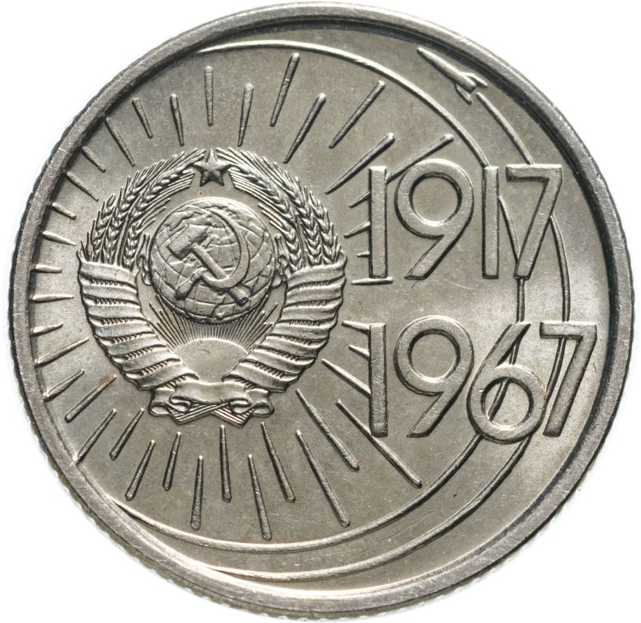 В 1967 году выпущена коллекционная серия монет, посвященная пятидесятилетию установления советской власти. Монеты достоинством от десяти копеек до одного рубля были выпущены огромным тиражом – 50 млн. экземпляров каждого номинала. Преимущественно, выполненные из медно-никелевого сплава, монеты отражали важные достижения Советского государства за прошедшее время.