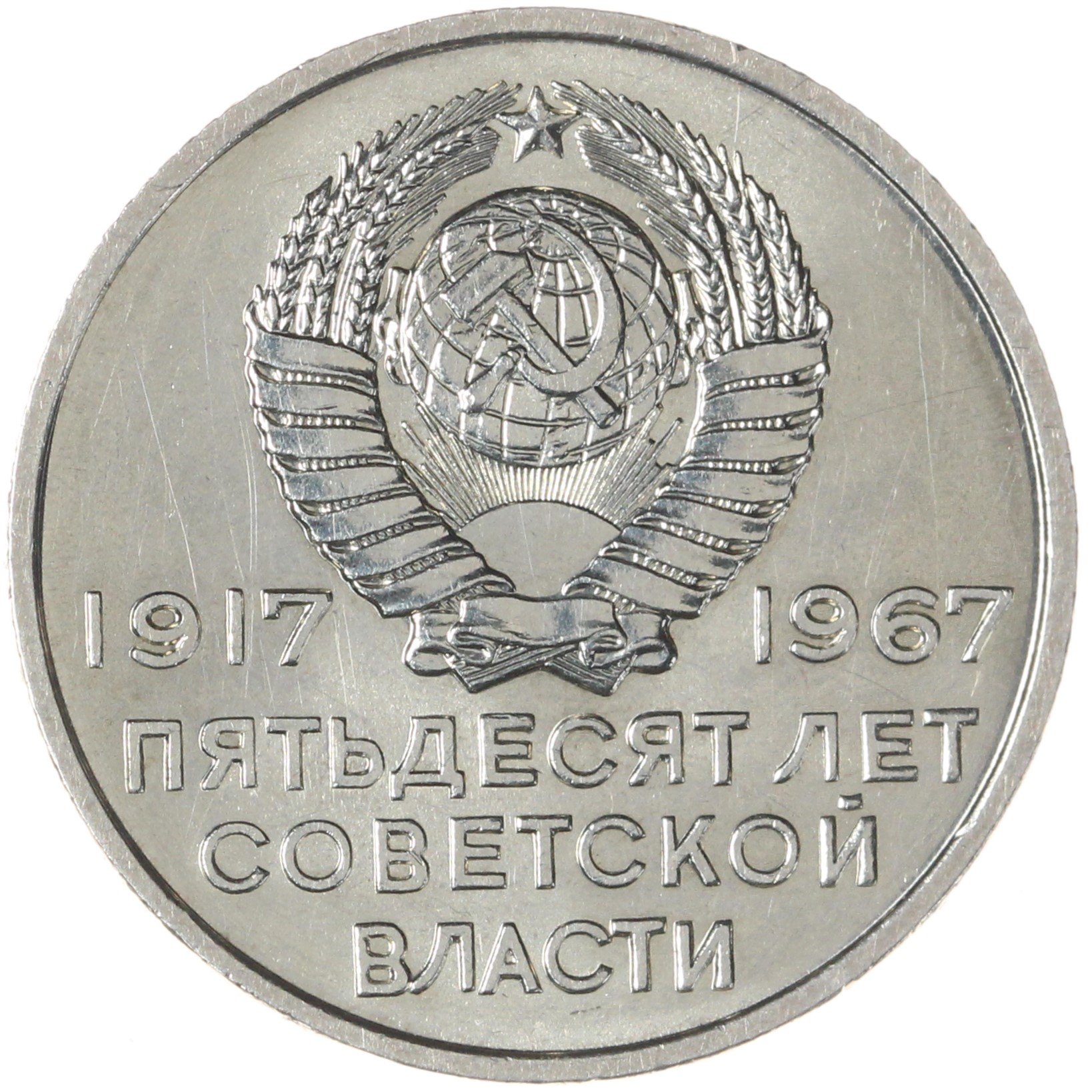 25 октября (7 ноября по новому стилю) 1917 года свершилась Великая Октябрьская социалистическая революция. Власть в стране перешла к большевикам, усердно начавшим строить мировой социализм в отдельно взятой стране. В тот день было свергнуто Временное правительство и зародилась диктатура, якобы, «пролетариата». Чем это всё закончилось, мы знаем, но во времена Советского Союза каждую годовщину отмечали, как великий праздник. Что уж говорить о 50-летнем юбилее. К этому событию приурочены и парады, и праздничные концерты, и народные гулянья. Выпустили огромное количество наград и, разумеется, памятные монеты.