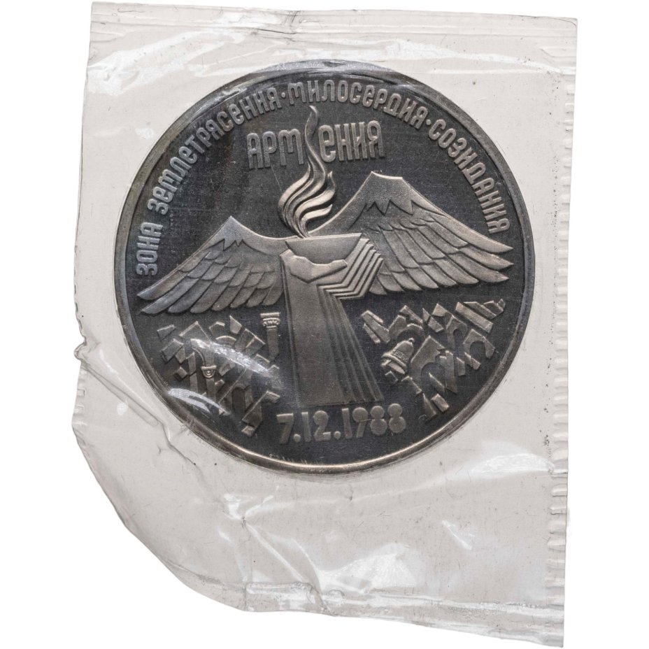 3 рубля 1989 Proof годовщина землетрясения в Армении