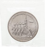 3 рубля 1991 "50 лет разгрома немецко-фашистских войск под Москвой" в запайке