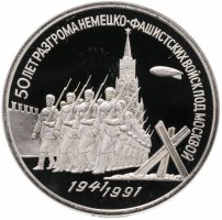 3 рубля 1991 Proof "50 лет разгрома немецко-фашистских войск под Москвой"