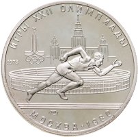 Сверху вдоль канта слова «ИГРЫ XXII ОЛИМПИАДЫ», ниже слева год выпуска монеты «1978» и эмблема XXII Олимпийских игр, в середине бегун и за ним стадион им. В.И. Ленина (Лужники), под бегуном смещенная влево монограмма монетного двора «ЛМД», внизу у края монеты разделенные точкой слово «МОСКВА» и год проведения XXII Олимпиады «1980».