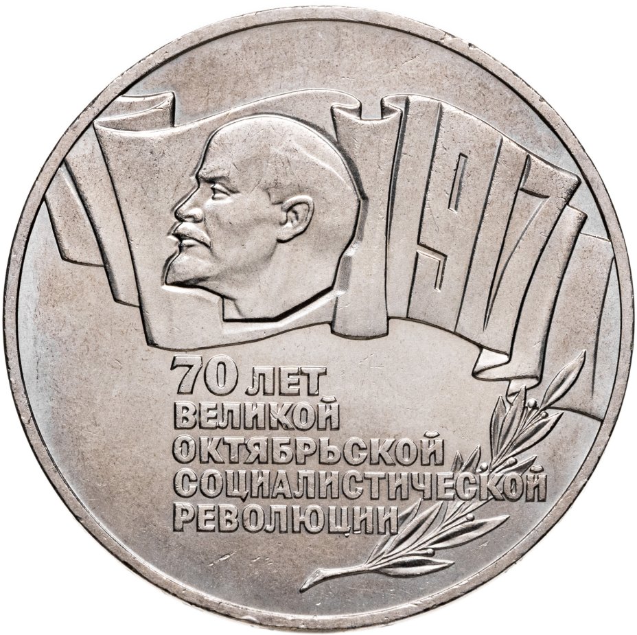 Хорошо известную в кругу нумизматов монету «70 лет Октябрьской революции» легко узнают по номиналу и году — 5 рублей 1987-го. Также её неофициально кличут «Шайбой» за немаленький диаметр. Для сравнения: медали в СССР делались от 40 мм., Шайба имеет диаметр 39 мм., а современные пятирублёвки — 25 мм.