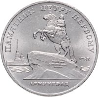 Серию советских памятных монет «Соборы и памятники», открыла монета, посвящённая памятнику Петру I в Ленинграде, один из самых известных памятников императору.