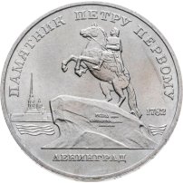 Серию советских памятных монет «Соборы и памятники», открыла монета, посвящённая памятнику Петру I в Ленинграде, один из самых известных памятников императору.