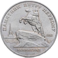 Серию советских памятных монет «Соборы и памятники», открыла монета, посвящённая памятнику Петру I в Ленинграде, один из самых известных памятников императору.