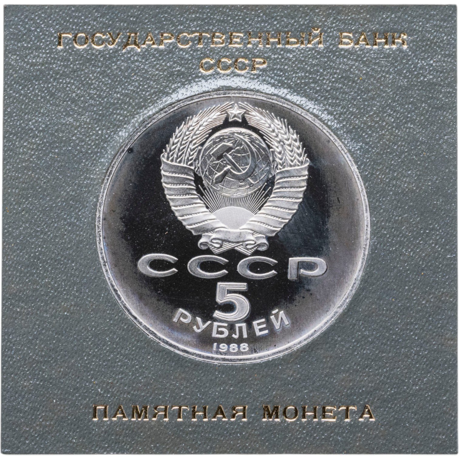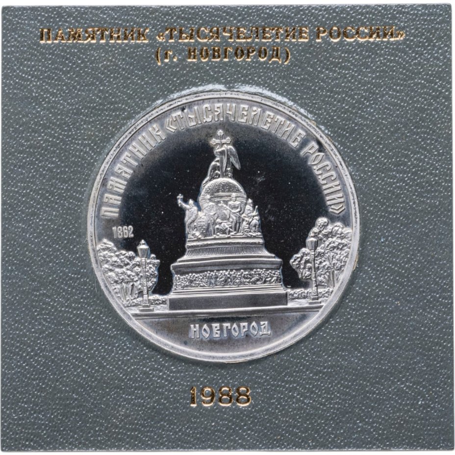 5 рублей 1988 Proof "Памятник "Тысячелетие России" в Новгороде" в футляре Госбанка СССР