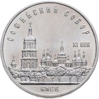 Софийскому собору в Киеве посвящена монета 5 рублей, вышедшая в 1988 году в СССР. Это юбилейная монета, которую можно купить как отдельно на этой странице, так и в составе набора юбилейных монет СССР. На монетах часто чеканятся изображения на исторические темы, и киевский Софийский собор, имеющий многовековую историю, подходит сюда как нельзя лучше.