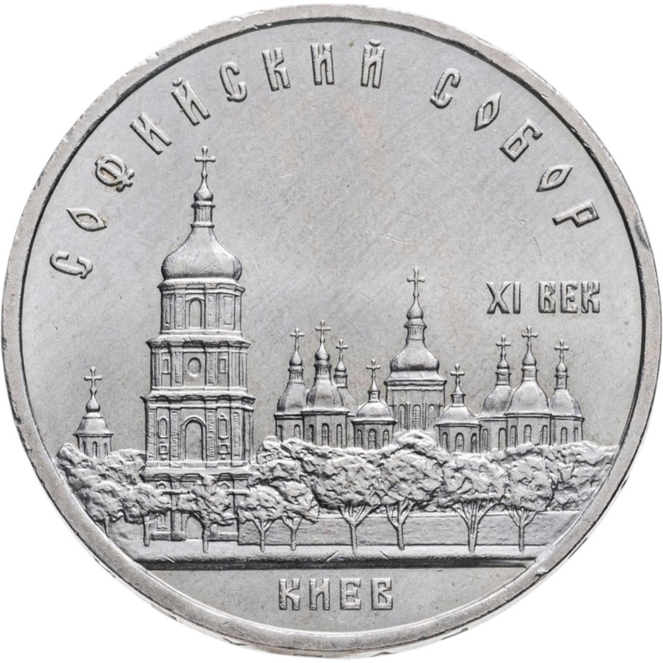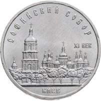 Софийскому собору в Киеве посвящена монета 5 рублей, вышедшая в 1988 году в СССР. Это юбилейная монета, которую можно купить как отдельно на этой странице, так и в составе набора юбилейных монет СССР. На монетах часто чеканятся изображения на исторические темы, и киевский Софийский собор, имеющий многовековую историю, подходит сюда как нельзя лучше.