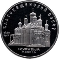 5 рублей 1989 Proof "Благовещенский собор Московского Кремля"