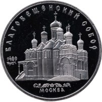5 рублей 1989 Proof "Благовещенский собор Московского Кремля"