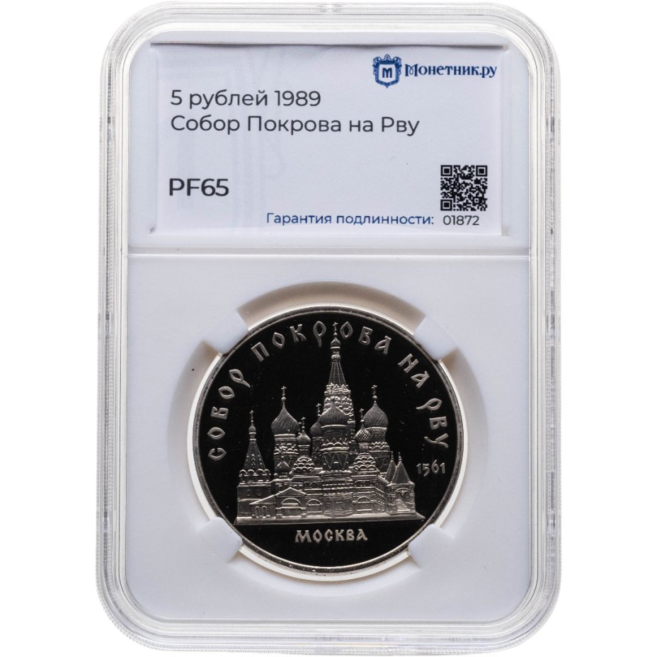 5 рублей 1989 Proof "Собор Покрова на Рву в Москве"