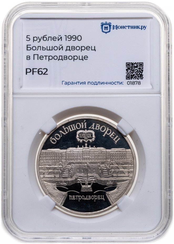 5 рублей 1990 Proof "Большой дворец в Петродворце" в банковской запайке