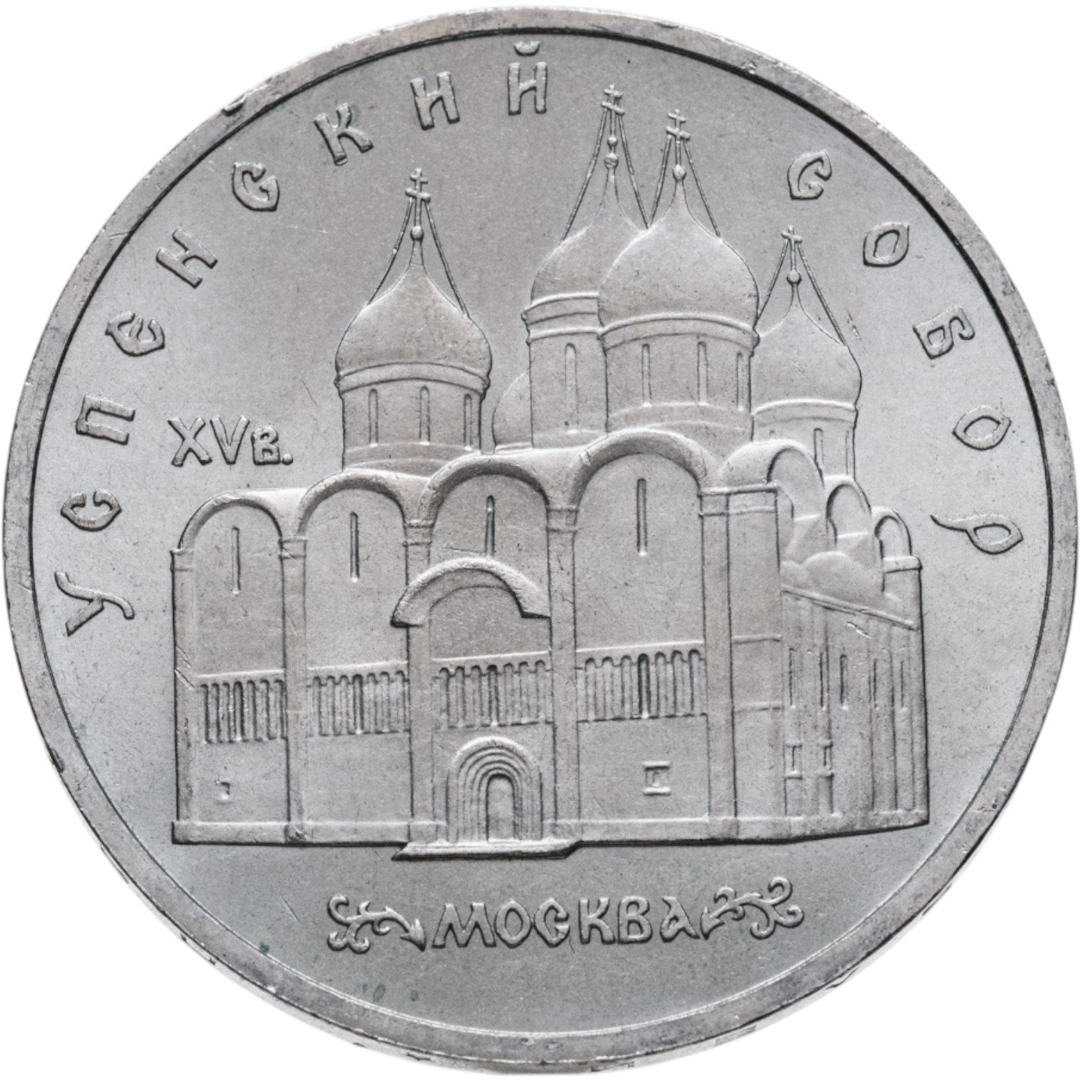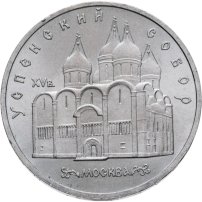 Самая необычная и красивая площадь в Москве – Соборная площадь Кремля. В архитектурный ансамбль входят красивейшие здания города: Грановитая и Патриаршая палаты плюс 6 великолепных церквей, каждая из них обладает собственным стилем и характером, каждая по-своему великолепна и достойна быть увековеченной не только в камне, но и на монетах. Именно для этого в 1988 году начали чеканить серию памятных пятирублёвок «Соборы и памятники» и к 1991 году успели отчеканить шесть монет. Из всего великолепия Соборной площади в серию вошли Архангельский, Благовещенский и Успенский соборы.