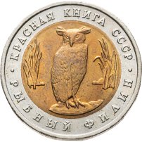 5 рублей 1991 ЛМД рыбный филин
