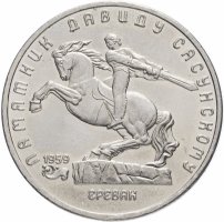 Одной из последних серий памятных монет, чеканившийся при СССР, была «Памятники архитектуры». С 1988 по 1991 в серии вышло 12 монет, 6 с соборами и святынями, и по 3 – с памятниками и историческими зданиями. Одной из последних чеканилась монета с символом Еревана – памятником национальному герою Армении Давиду Сасунскому.