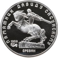 5 рублей 1991 Proof "Памятник Давиду Сасунскому в Ереване"