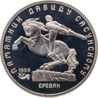 5 рублей 1991 Proof "Памятник Давиду Сасунскому в Ереване" в банковской запайке